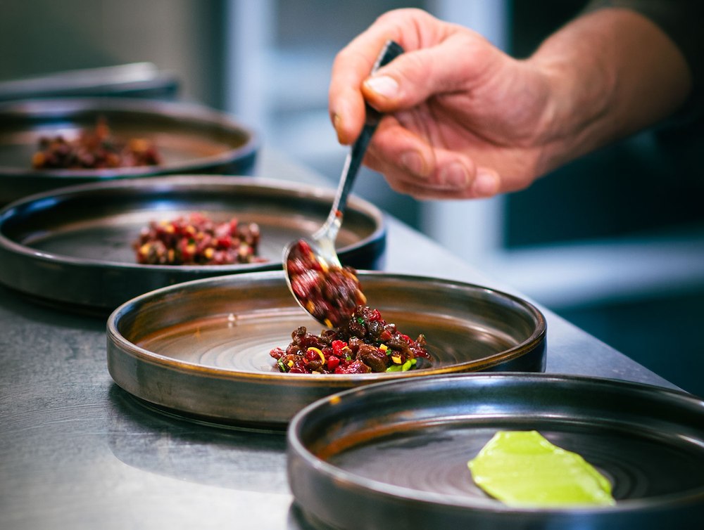 - Chokladfondant med vaniljglass & vinbär.